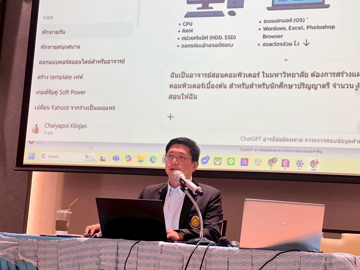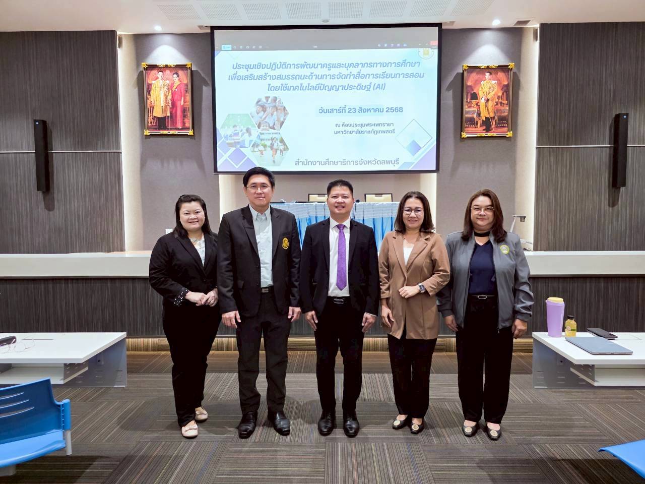 ผศ.ไชยพล กลิ่นจันทร์ ผู้อำนวยการสำนักวิทยบริการและเทคโนโลยีสารสนเทศ อาจารย์ปัญญ์ชลี เต่าทอง อาจารย์ ดร.สุธิษา เชญชาญ รองผู้อำนวยการสำนักวิทยบริการและเทคโนโลยีสารสนเทศ และอาจารย์ ดร.สจีวรรณ ปราชญ์ศรี อาจารย์ประจำสาขาวิชาเทคโนโลยีดิจิทัล คณะเทคโนโลยีสารสนเทศ มหาวิทยาลัยราชภัฏเทพสตรี ให้เกียรติเป็นวิทยากรในโครงการพัฒนาครูและบุคลากรทางการศึกษา เพื่อเสริมสร้างสมรรถนะด้านการจัดทำสื่อการเรียนการสอน โดยใช้เทคโนโลยีปัญญาประดิษฐ์ (AI) ณ ห้องพระเพทราชา มหาวิทยาลัยราชภัฏเทพสตรี เมื่อวันที่ 23 สิงหาคม 2568 จัดโดยสำนักงานศึกษาธิการจังหวัดลพบุรี โครงการดังกล่าวมุ่งเน้นการยกระดับสมรรถนะครูและบุคลากรทางการศึกษาในการออกแบบและจัดทำสื่อการเรียนการสอนด้วยเทคโนโลยี AI เพื่อเสริมสร้างนวัตกรรมการเรียนรู้ที่ทันสมัยและตอบโจทย์ผู้เรียนในยุคดิจิทัล
