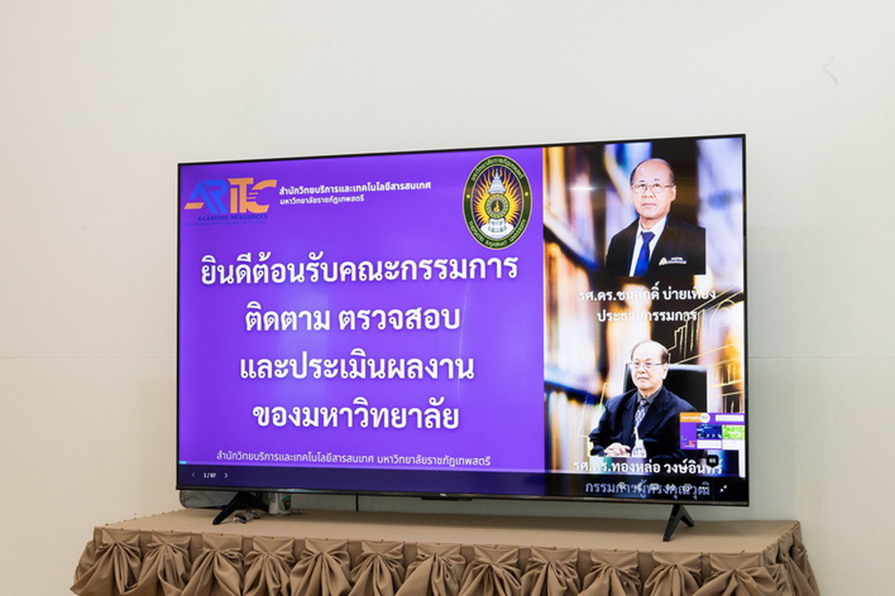 สำนักวิทยบริการและเทคโนโลยีสารสนเทศ มหาวิทยาลัยราชภัฏเทพสตรี ให้การต้อนรับคณะกรรมการติดตาม ตรวจสอบ และประเมินผลงานของมหาวิทยาลัยฯ ในโอกาสเดินทางมาตรวจเยี่ยมและประเมินผลการดำเนินงานประจำปีงบประมาณ พ.ศ. 2568 (ตั้งแต่วันที่ 1 ตุลาคม พ.ศ. 2567 ถึง 30 กันยายน พ.ศ. 2568) เมื่อวันที่ 4 พฤศจิกายน 2568 การต้อนรับในครั้งนี้ จัดขึ้น ณ ห้องแสดงนิทรรศการ สำนักวิทยบริการและเทคโนโลยีสารสนเทศ โดยมี ผู้ช่วยศาสตราจารย์ไชยพล กลิ่นจันทร์ ผู้อำนวยการสำนักฯ พร้อมด้วย อาจารย์ปัญญ์ชลี เต่าทอง, อาจารย์ ดร.สุธิษา เชญชาญ รองผู้อำนวยการฯ และ นางสาวอณุภา ทานะรมณ์ หัวหน้าสำนักงาน ร่วมให้การต้อนรับ คณะกรรมการที่เข้าตรวจเยี่ยมในครั้งนี้ นำโดย รองศาสตราจารย์ ดร.ชนศักดิ์ บ่ายเที่ยง ประธานคณะกรรมการติดตาม ตรวจสอบ และประเมินผลงานของ มรภ.เทพสตรี พร้อมด้วย รองศาสตราจารย์ ดร.ทองหล่อ วงษ์อินทร์ กรรมการผู้ทรงคุณวุฒิ สำหรับการตรวจเยี่ยมดังกล่าว มีวัตถุประสงค์เพื่อร่วมแลกเปลี่ยนความคิดเห็นกับผู้เกี่ยวข้อง รับฟังผลการดำเนินงานในรอบปีที่ผ่านมา สภาพปัญหาที่พบ และร่วมกันหาแนวทางแก้ไขปัญหา เพื่อนำไปสู่การพัฒนาการดำเนินงานของสำนักวิทยบริการและเทคโนโลยีสารสนเทศ ให้มีประสิทธิภาพยิ่งขึ้นต่อไป