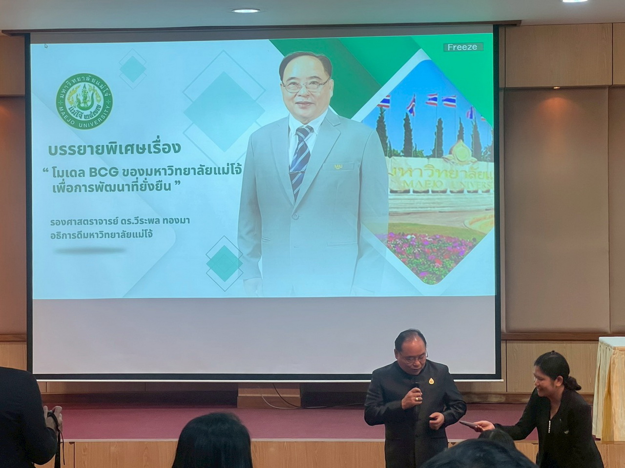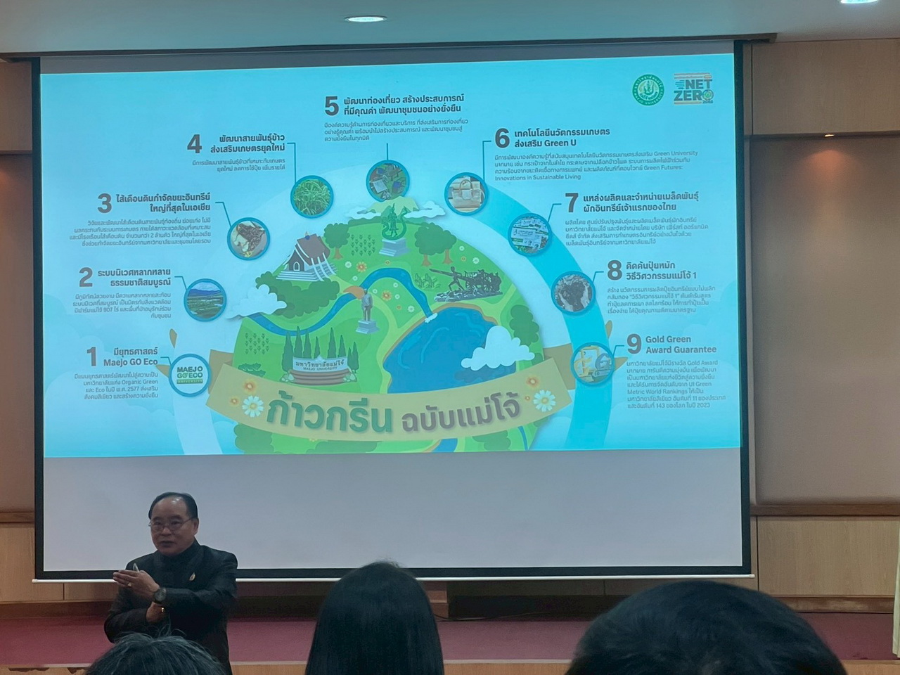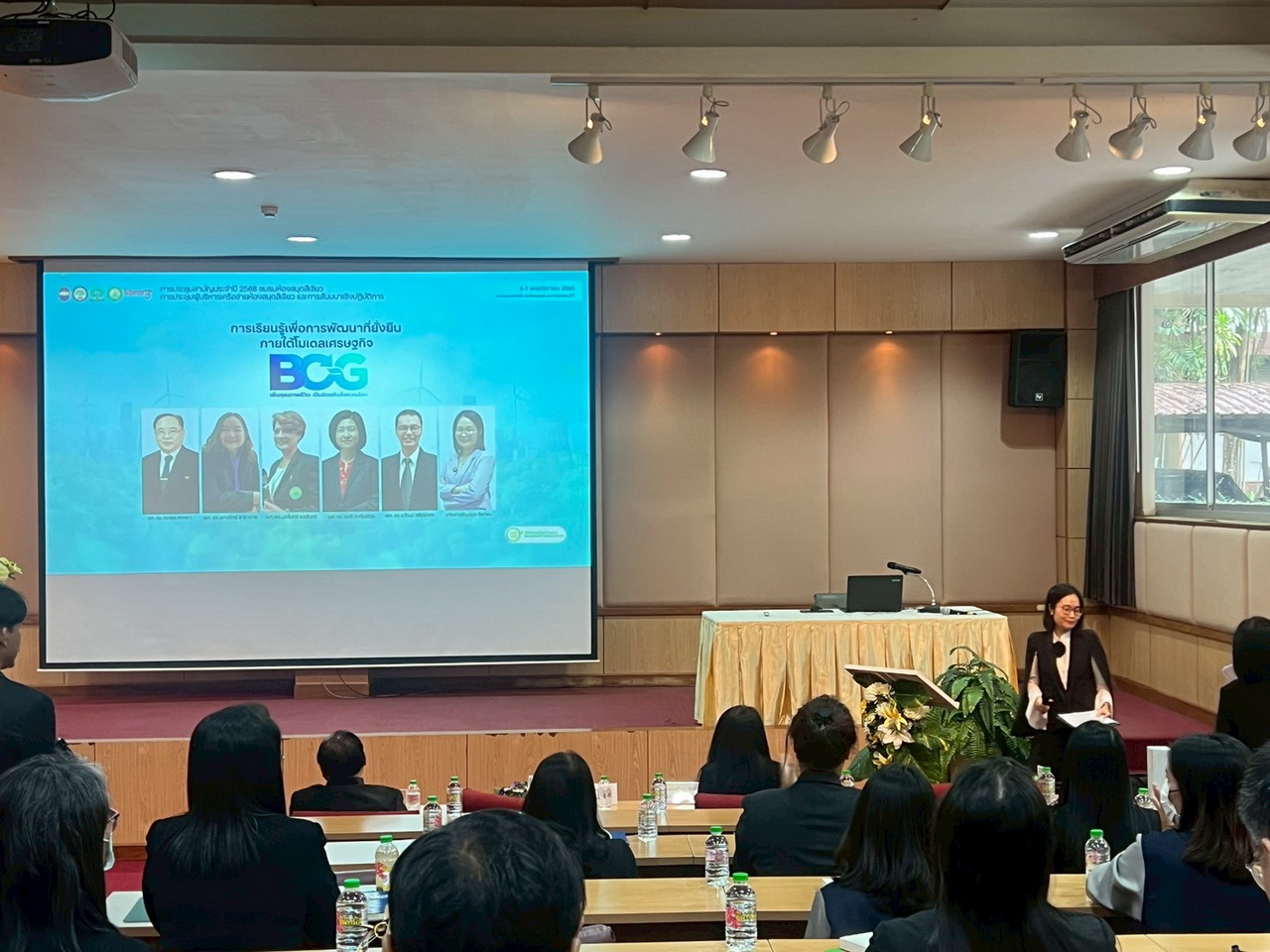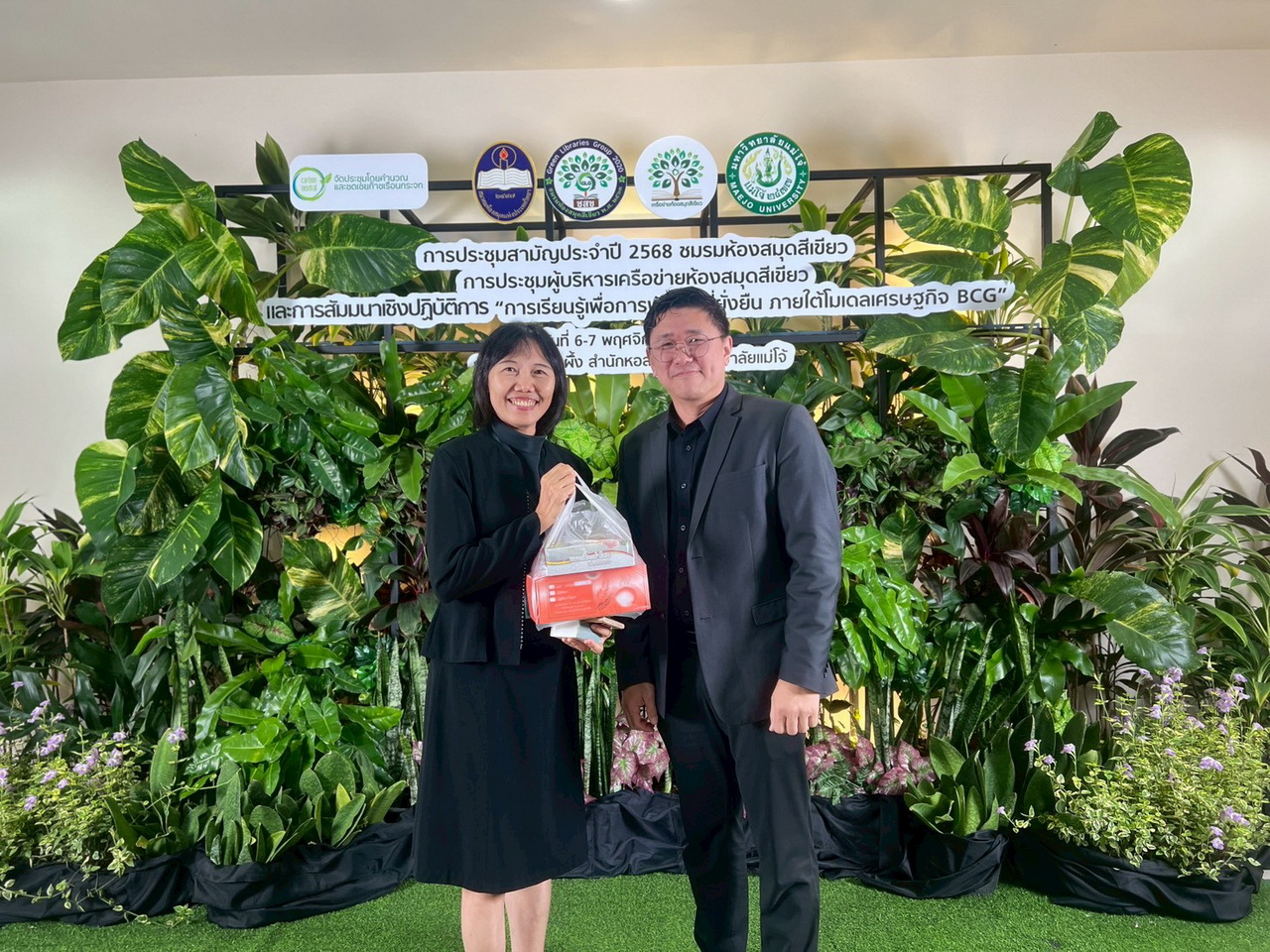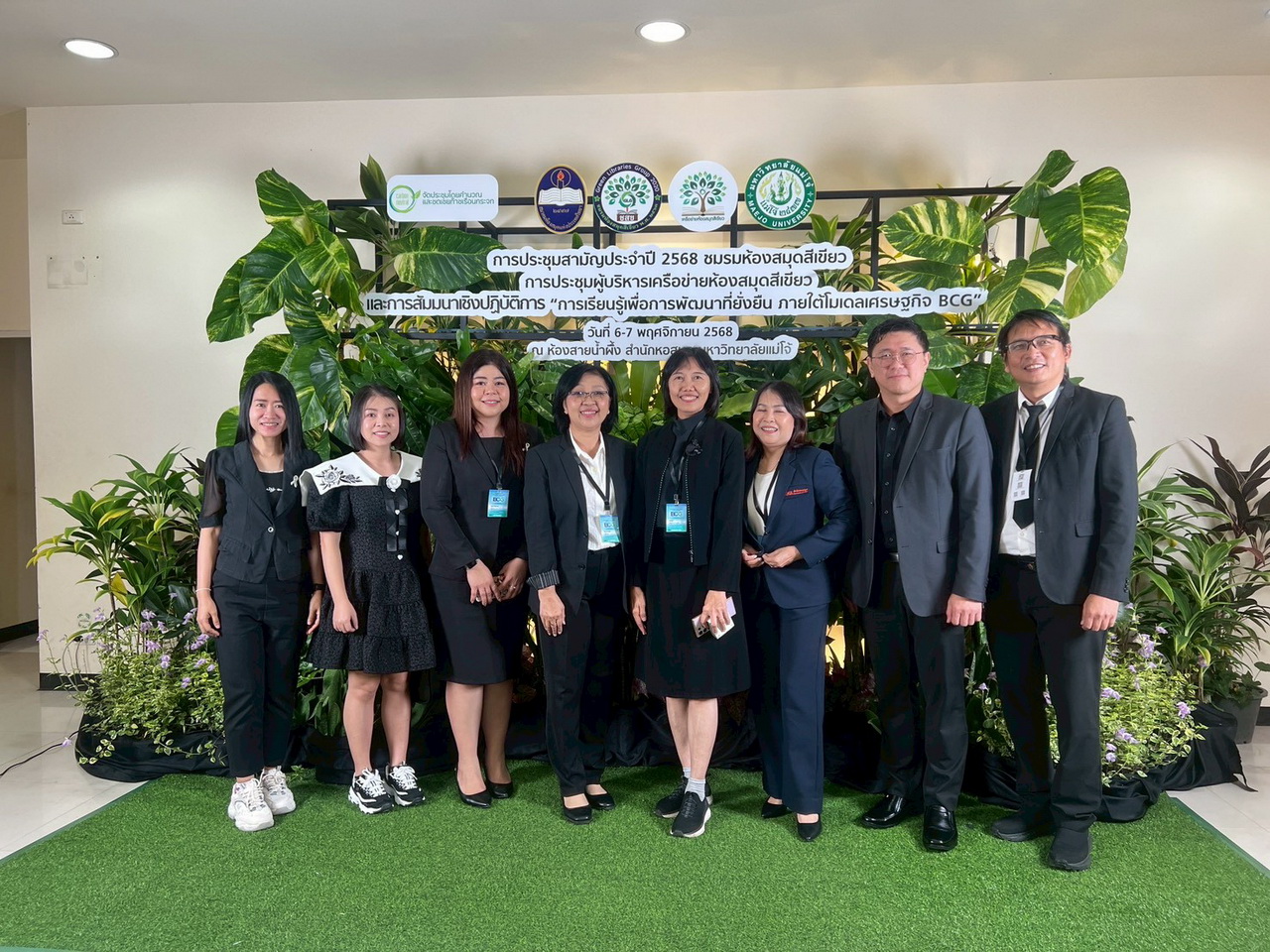 ผศ.ไชยพล กลิ่นจันทร์ ผู้อำนวยการสำนักวิทยบริการและเทคโนโลยีสารสนเทศ มหาวิทยาลัยราชภัฏเทพสตรี อาจารย์อาจารย์ปัญญ์ชลี เต่าทอง อาจารย์ ดร.สุธิษา เชญชาญ รองผู้อำนวยการสำนักวิทยบริการและเทคโนโลยีสารสนเทศ พร้อมบุคลากรเข้าร่วม “การประชุมสามัญประจำปี 2568 ชมรมห้องสมุดสีเขียว การประชุมผู้บริหารเครือข่ายห้องสมุดสีเขียว และการสัมมนาเชิงปฏิบัติการ เรื่อง การเรียนรู้เพื่อการพัฒนาที่ยั่งยืน ภายใต้โมเดลเศรษฐกิจ BCG” ณ ห้องสายน้ำผึ้ง สำนักหอสมุด มหาวิทยาลัยแม่โจ้ จังหวัดเชียงใหม่ ระหว่างวันที่ 6 – 7 พฤศจิกายน 2568 ภายในงานประกอบด้วยการบรรยายและเวทีเสวนาจากผู้ทรงคุณวุฒิด้านพลังงาน สิ่งแวดล้อม และการจัดการความรู้ รวมถึงกิจกรรม Workshop เพื่อแลกเปลี่ยนแนวทางการขับเคลื่อน “ห้องสมุดสีเขียว” สู่ความยั่งยืนตามแนวทาง BCG Economy Model (Bio-Circular-Green Economy) โดยงานประชุมดังกล่าวดำเนินการในรูปแบบ Carbon Neutral Event เพื่อลดและชดเชยการปล่อยก๊าซเรือนกระจกอย่างยั่งยืน ตามแนวคิด “เพิ่มคุณภาพชีวิต เป็นมิตรกับสิ่งแวดล้อม”