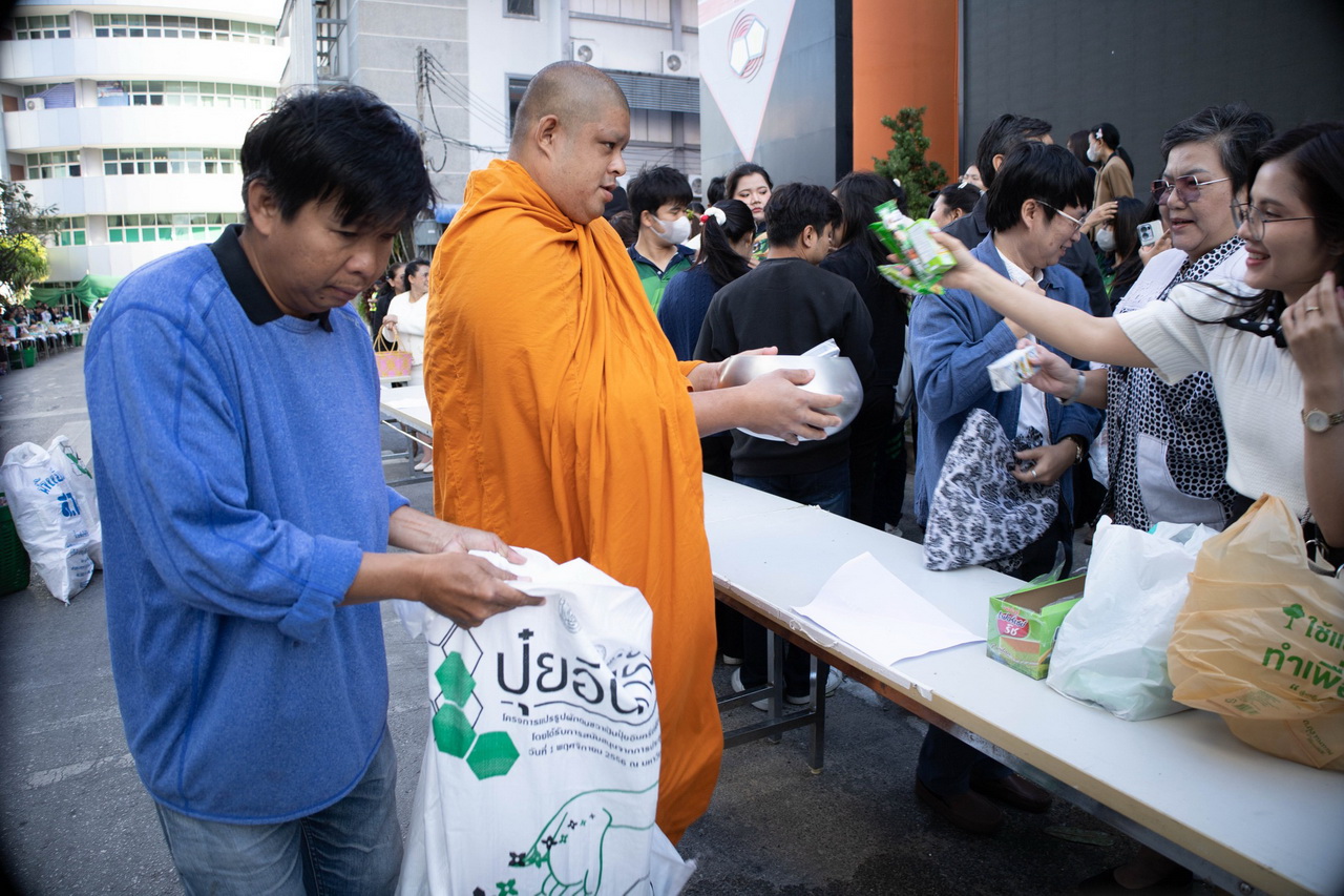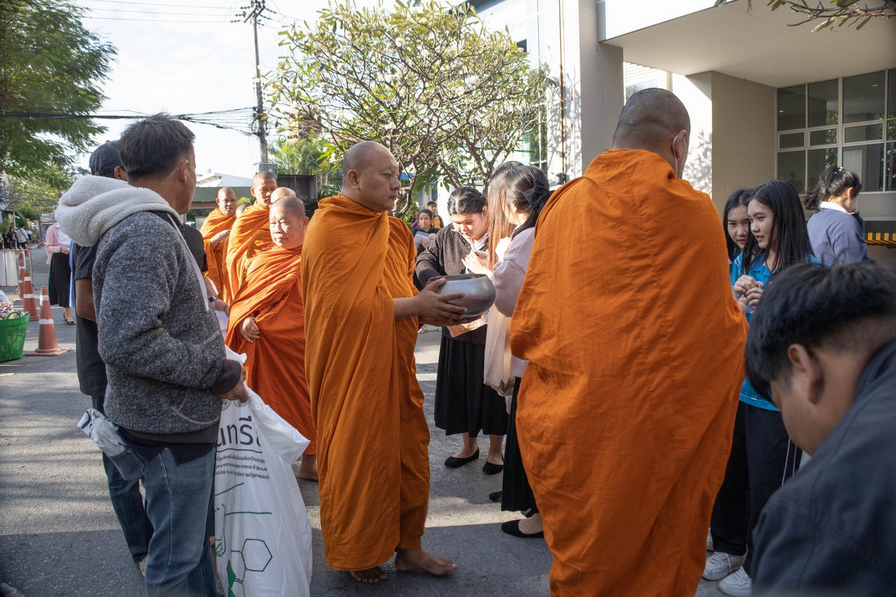 พิธีทำบุญตักบาตรอาหารแห้งและเครื่องอุปโภคแด่พระภิกษุสงฆ์