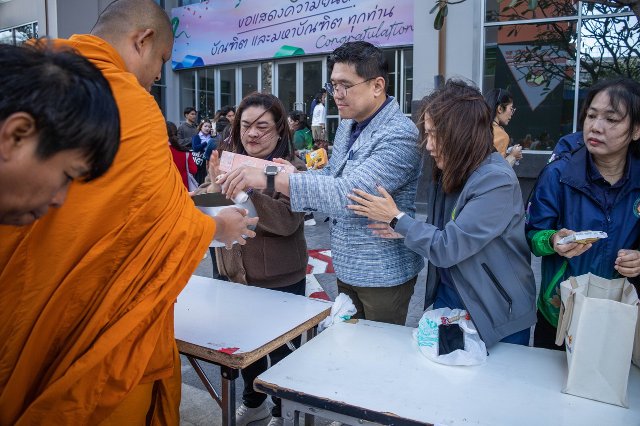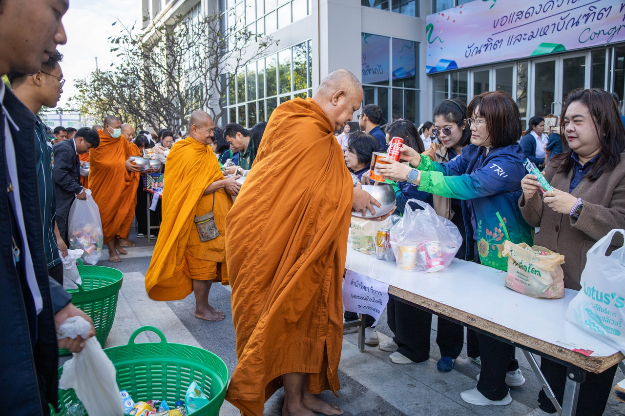 คณะผู้บริหารและบุคลากรสำนักวิทยบริการและเทคโนโลยีสารสนเทศ มหาวิทยาลัยราชภัฏเทพสตรี รวมใจเป็นหนึ่งเข้าร่วมพิธีทำบุญตักบาตรอาหารแห้งและเครื่องอุปโภคแด่พระภิกษุสงฆ์ ณ ด้านข้างอาคารรัตนเทพสตรี มหาวิทยาลัยราชภัฏเทพสตรี เมื่อวันที่ 7 มกราคม 2569 เพื่อเป็นการต้อนรับพุทธศักราชใหม่ 2569 พร้อมร่วมกันสืบสานวัฒนธรรมอันดีงามทางพระพุทธศาสนา และสร้างพลังใจในการเริ่มต้นทำงานและการเรียนการสอนอย่างมีความสุขตลอดทั้งปี