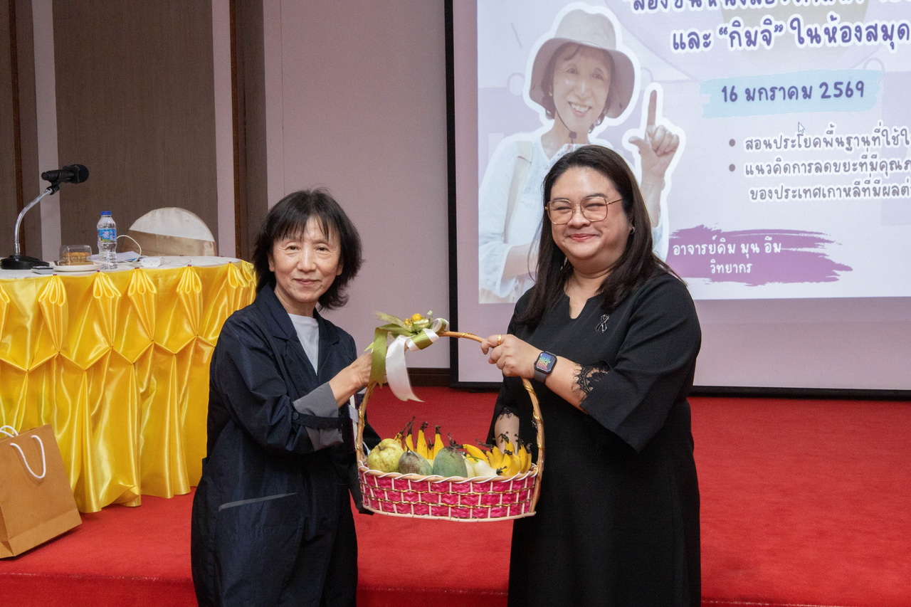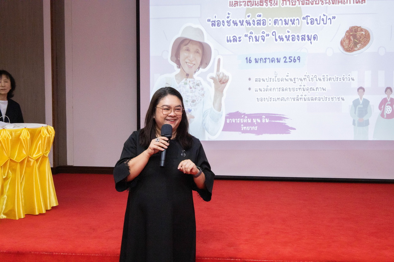 สำนักวิทยบริการและเทคโนโลยีสารสนเทศ มหาวิทยาลัยราชภัฏเทพสตรี จัดโครงการอบรม “การสืบค้นหมวดหมู่หนังสือ และวัฒนธรรมภาษาของประเทศเกาหลี” ณ ห้องมินิเธียเตอร์ สำนักวิทยบริการฯ เมื่อวันที่ 16 มกราคม 2569 การอบรมในครั้งนี้ได้รับเกียรติจาก Ms. Kim Moon Eum (อาจารย์คิม มุน อึม หรือ อาจารย์แม่น้ำ) อาสาสมัครผู้เชี่ยวชาญจากองค์การความร่วมมือระหว่างประเทศแห่งเกาหลี (Korea International Cooperation Agency หรือ KOICA) มาเป็นวิทยากรถ่ายทอดความรู้ โดยกิจกรรมมุ่งเน้นการฝึกทักษะภาษาเกาหลีเบื้องต้นที่ใช้ได้จริงในชีวิตประจำวัน ควบคู่ไปกับการสอดแทรกแนวคิดการจัดการสิ่งแวดล้อมที่เป็นเลิศของประเทศเกาหลี และเทคนิคการสืบค้นทรัพยากรสารสนเทศ สำหรับวัตถุประสงค์สำคัญของกิจกรรมนี้ จัดขึ้นเพื่อให้ผู้เข้าร่วมอบรมมีความรู้ความเข้าใจในวัฒนธรรมเกาหลี และสามารถพัฒนาทักษะการสืบค้นทรัพยากรสารสนเทศภายในห้องสมุดผ่านหัวข้อการเรียนรู้ที่กำลังเป็นที่สนใจ นอกจากนี้ยังเป็นการสร้างความตระหนักรู้ให้ผู้เข้าร่วมอบรมเห็นถึงความสำคัญของการจัดการสิ่งแวดล้อม เพื่อนำแนวคิดที่ได้รับไปประยุกต์ใช้ในการพัฒนาคุณภาพชีวิตและสังคมอย่างยั่งยืนต่อไป