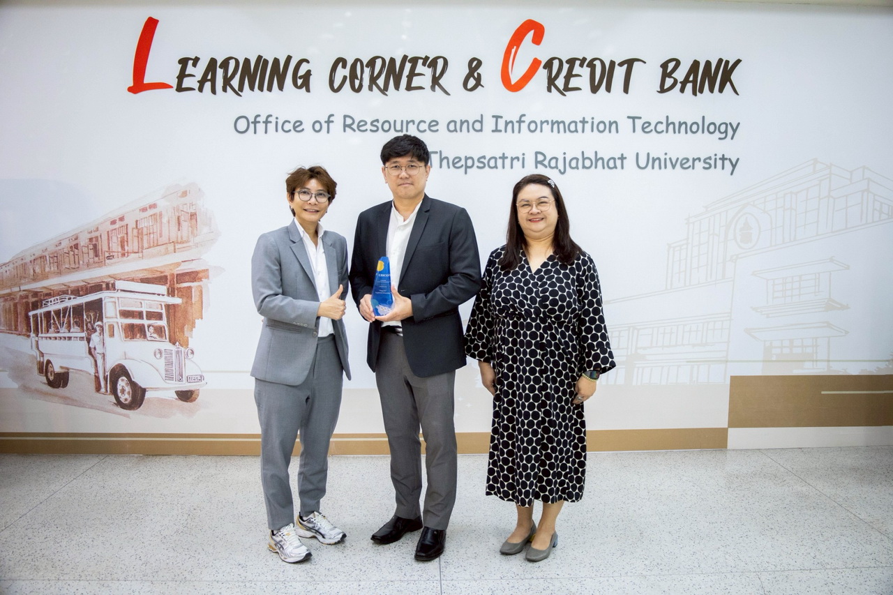 ผศ.ไชยพล กลิ่นจันทร์ ผู้อำนวยการสำนักวิทยบริการและเทคโนโลยีสารสนเทศ มหาวิทยาลัยราชภัฏเทพสตรี พร้อมด้วยอาจารย์ปัญญ์ชลี เต่าทอง รองผู้อำนวยการสำนักวิทยบริการฯ รับมอบโล่รางวัล "Sustainable AI Solution Award 2025" จากบริษัท EBSCO ผู้ให้บริการฐานข้อมูลระดับโลก ซึ่งเป็นรางวัลที่สะท้อนถึงศักยภาพการขับเคลื่อนองค์กรด้วยเทคโนโลยี AI จากผลงานความสำเร็จในการส่งเสริม และประยุกต์ใช้เทคโนโลยีปัญญาประดิษฐ์ (AI) และเพื่อสร้างความยั่งยืนให้แก่หน่วยงานและชุมชน ซึ่งถือเป็นต้นแบบสำคัญของการใช้เทคโนโลยีเพื่อการพัฒนาอย่างยั่งยืน เมื่อวันที่ 24 กุมภาพันธ์ 2569