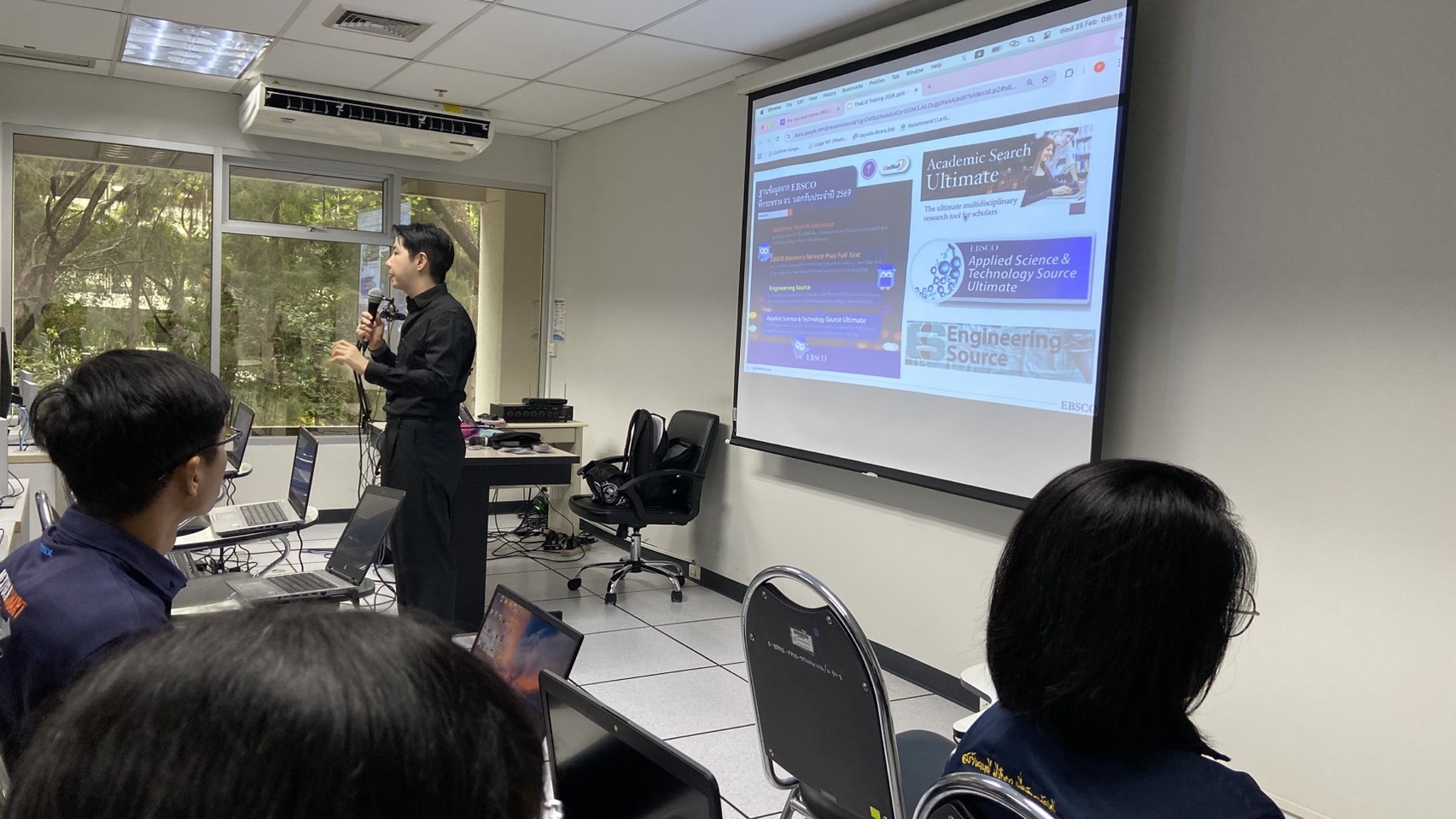 บุคลากรสำนักวิทยบริการและเทคโนโลยีสารสนเทศ มหาวิทยาลัยราชภัฏเทพสตรี เข้าร่วมการฝึกอบรมการใช้งานฐานข้อมูลอิเล็กทรอนิกส์เพื่อการสืบค้นข้อมูล (ออนไลน์) จำนวน 4 ฐานข้อมูล ประจำปีงบประมาณ พ.ศ. 2569 เพื่อให้มีความรู้ความเชี่ยวชาญ และรับทราบเทคนิค วิธีการสืบค้นข้อมูลสำหรับให้บริการสืบค้นข้อมูลแก่นักศึกษา ณ อาคารเทพรัตน์วิทยาโชติ สำนักหอสมุด มหาวิทยาลัยเกษตรศาสตร์ (บางเขน) กรุงเทพมหานคร เมื่อวันที่ 25 กุมภาพันธ์ 2569