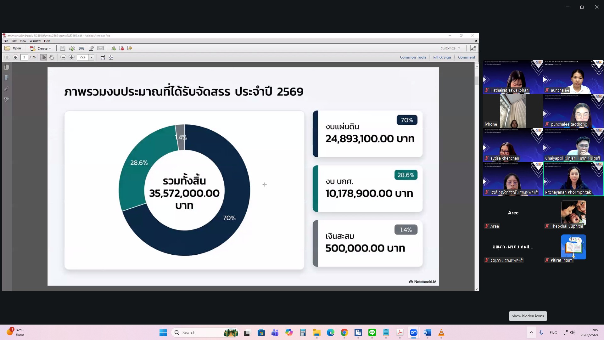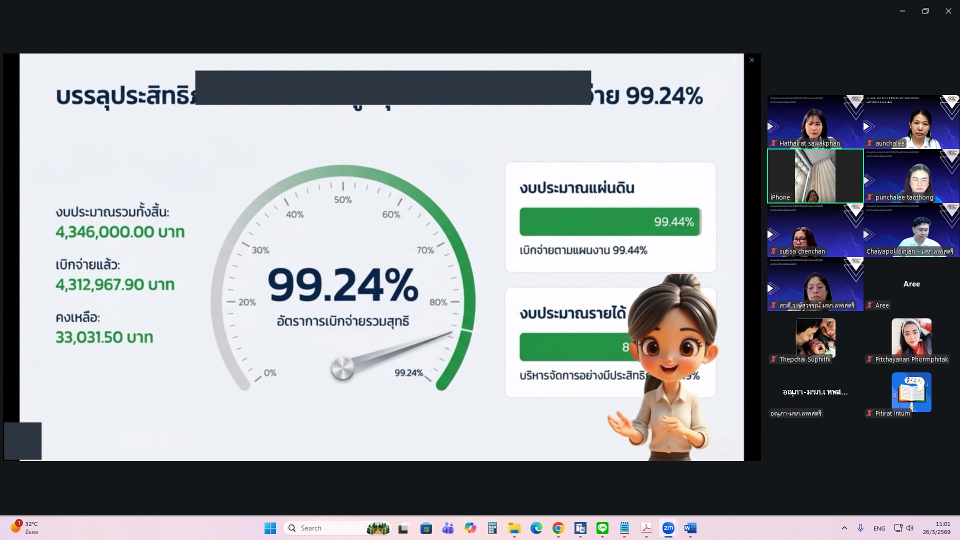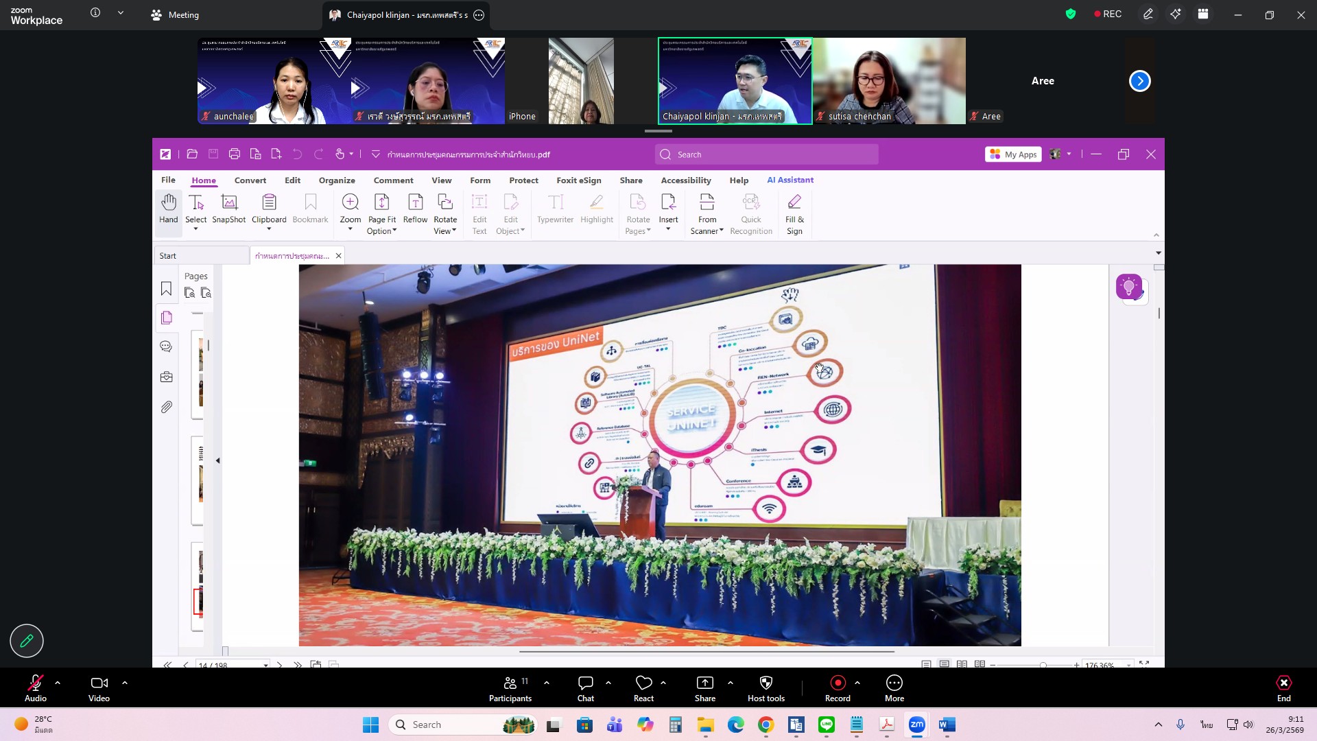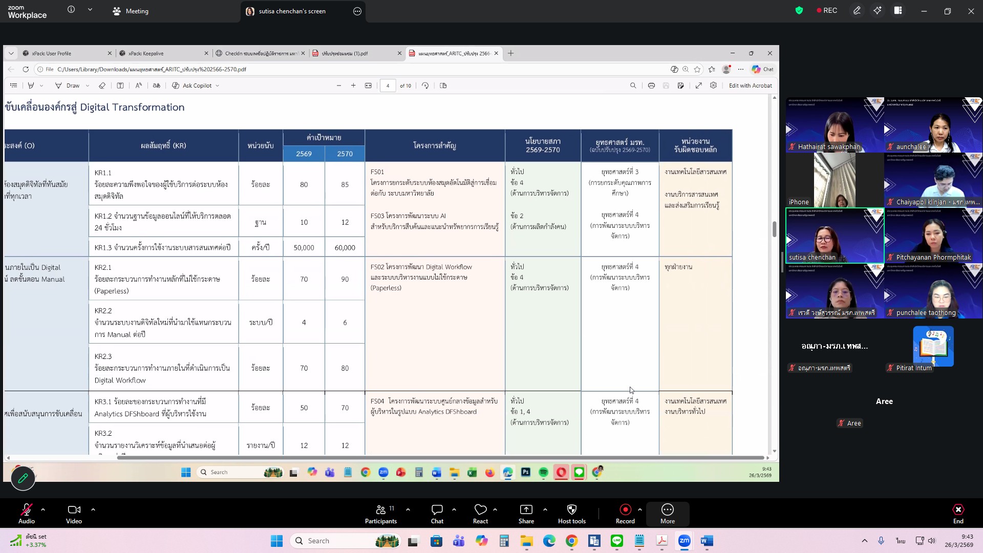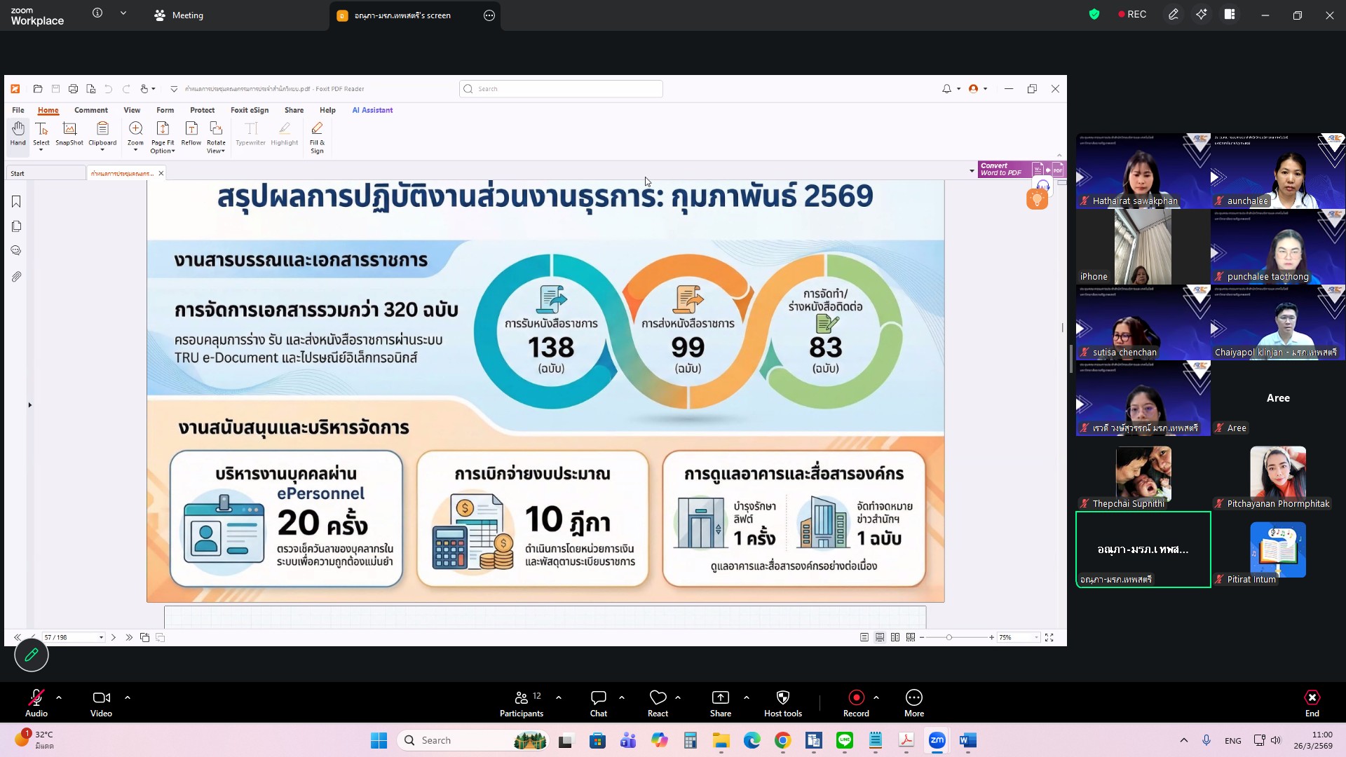 ผศ.ไชยพล กลิ่นจันทร์ ผู้อำนวยการสำนักวิทยบริการและเทคโนโลยีสารสนเทศ มหาวิทยาลัยราชภัฏเทพสตรี ให้เกียรติเป็นประธานการประชุมคณะกรรมการประจำสำนักวิทยบริการและเทคโนโลยีสารสนเทศ ครั้งที่ 1/2569 ในรูปแบบการประชุมระบบ e-meeting ผ่านสื่ออิเล็กทรอนิกส์ zoom Meeting เมื่อวันที่ 26 มีนาคม 2569 เวลา 09.00 น. โดยมีวาระที่เสนอเพื่อทราบ ได้แก่ แผนยุทธศาสตร์สำนักวิทยบริการและเทคโนโลยีสารสนเทศ มหาวิทยาลัยราชภัฏเทพสตรี พ.ศ. 2568–2572 , สรุปผลการ Coaching นำเสนอผลการดำเนินงานสำนักงานสีเขียวและห้องสมุดสีเขียว