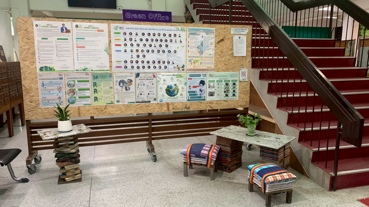 สำนักวิทยบริการและเทคโนโลยีสารสนเทศได้จัดโครงการ “ARITC ECO Share: ขยะมีค่า เมื่อทุกคนมีส่วนร่วม” เพื่อสนับสนุนการดำเนินงานตามแนวทาง Green Office และ Green Library โดยมุ่งเน้นการบริหารจัดการขยะให้เกิดประโยชน์ “โดยเฉพาะการรีไซเคิล หนังสือเก่า กระดาษหนังสือพิมพ์ และชั้นไม้เก่า” ให้กลายเป็นของใช้หรือของตกแต่งใหม่ โครงการนี้ช่วยลดปริมาณขยะ ฝึกทักษะการออกแบบเชิงสร้างสรรค์ และปลูกจิตสำนึกด้านสิ่งแวดล้อมให้แก่เยาวชนและชุมชน จัดดำเนินการในเดือนกรกฎาคม 2568 โดยมีวัตถุประสงค์เพื่อส่งเสริมการรีไซเคิล ลดขยะ พัฒนาความคิดสร้างสรรค์ และคงไว้ซึ่งเอกลักษณ์ของการเข้าร่วมกิจกรรมตามแนวคิด Green Office และ Green Library